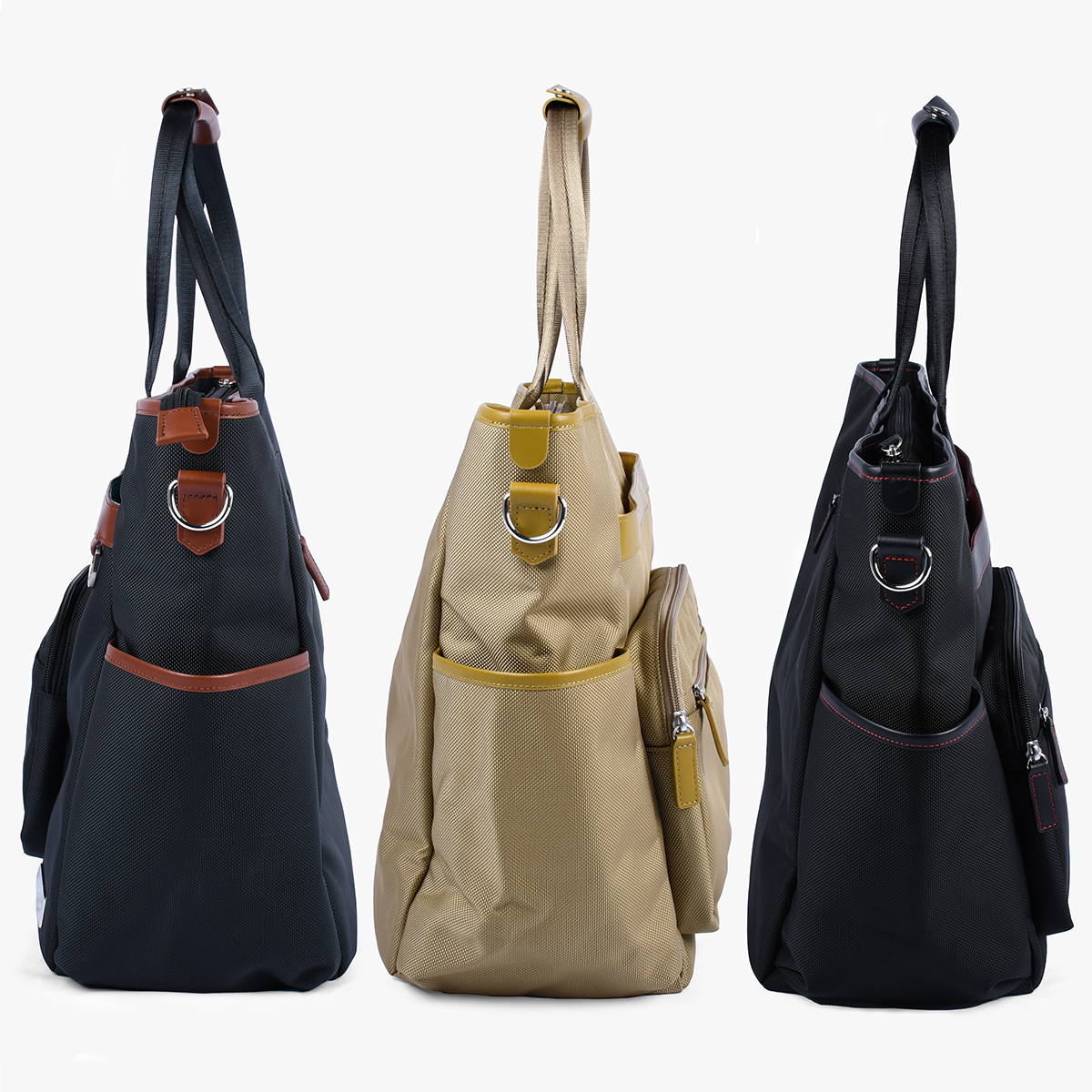 [前面] ファスナーポケット×2、スナップボタン付きポケット×1